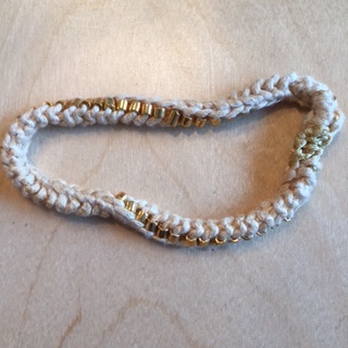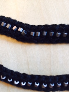 In the middle: a failed attempt at a crocheted strand:  no fault of the pattern– the yarn was too fine for the size of beads. Check out Wrap Around Crochet bracelets for lots of successful projects and Yuli Nilssen for her other designs.