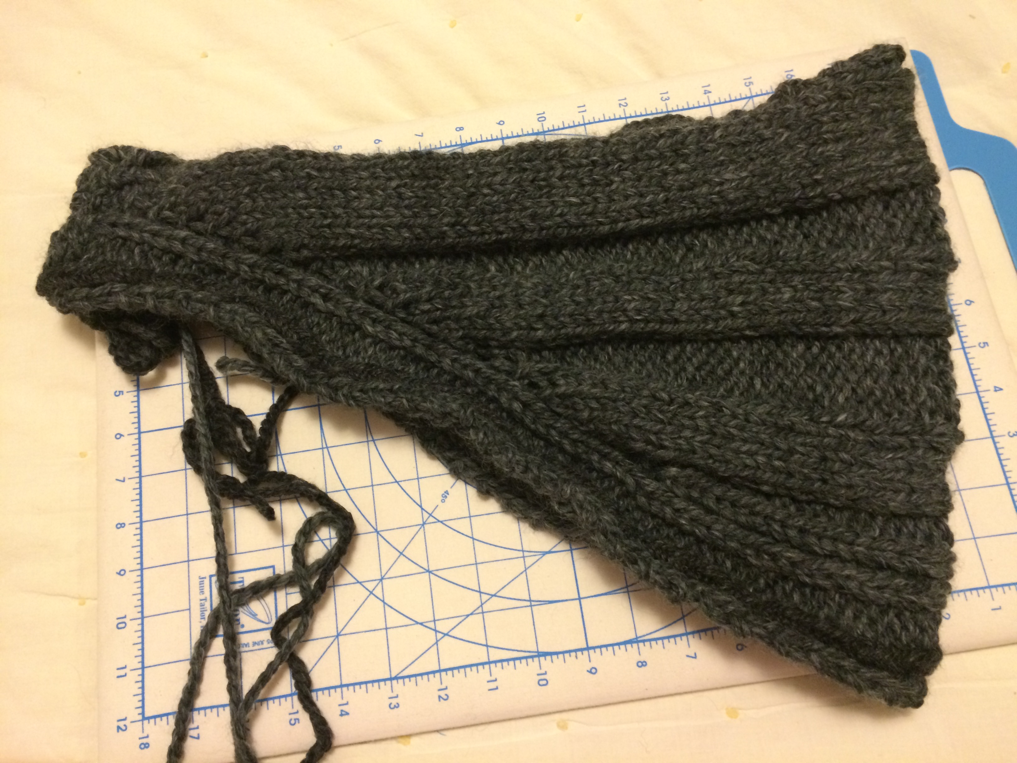 Catherine is learning from the PANEM Katniss cowl wrap by Dahlia in Bloom whose Rav name is DevilintheO.