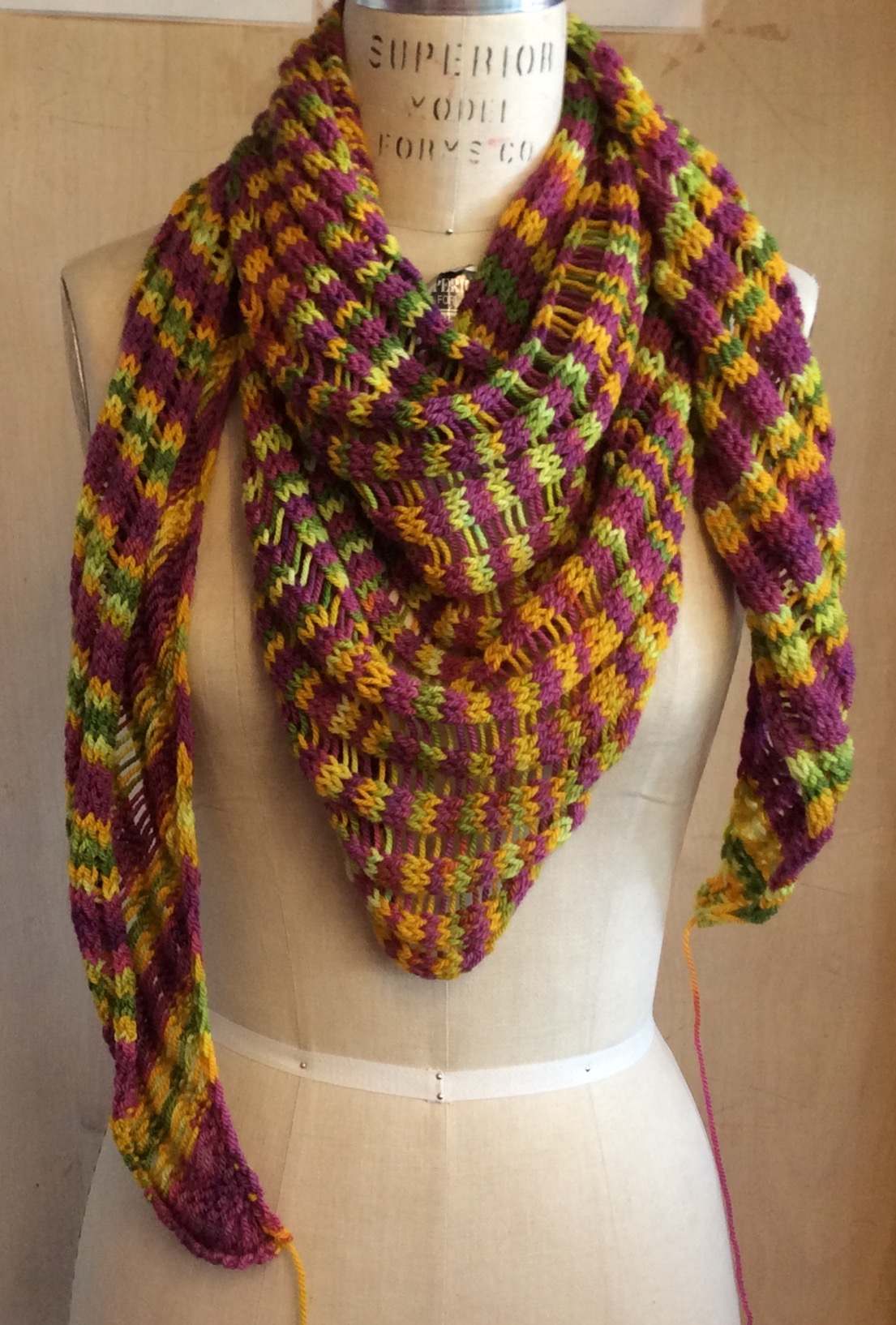 Self Striping Canon Hand Dyes in “Lover’s to bed’ ’tis almost fairy time” colorway. It’s a bit brighter than photograph suggests.