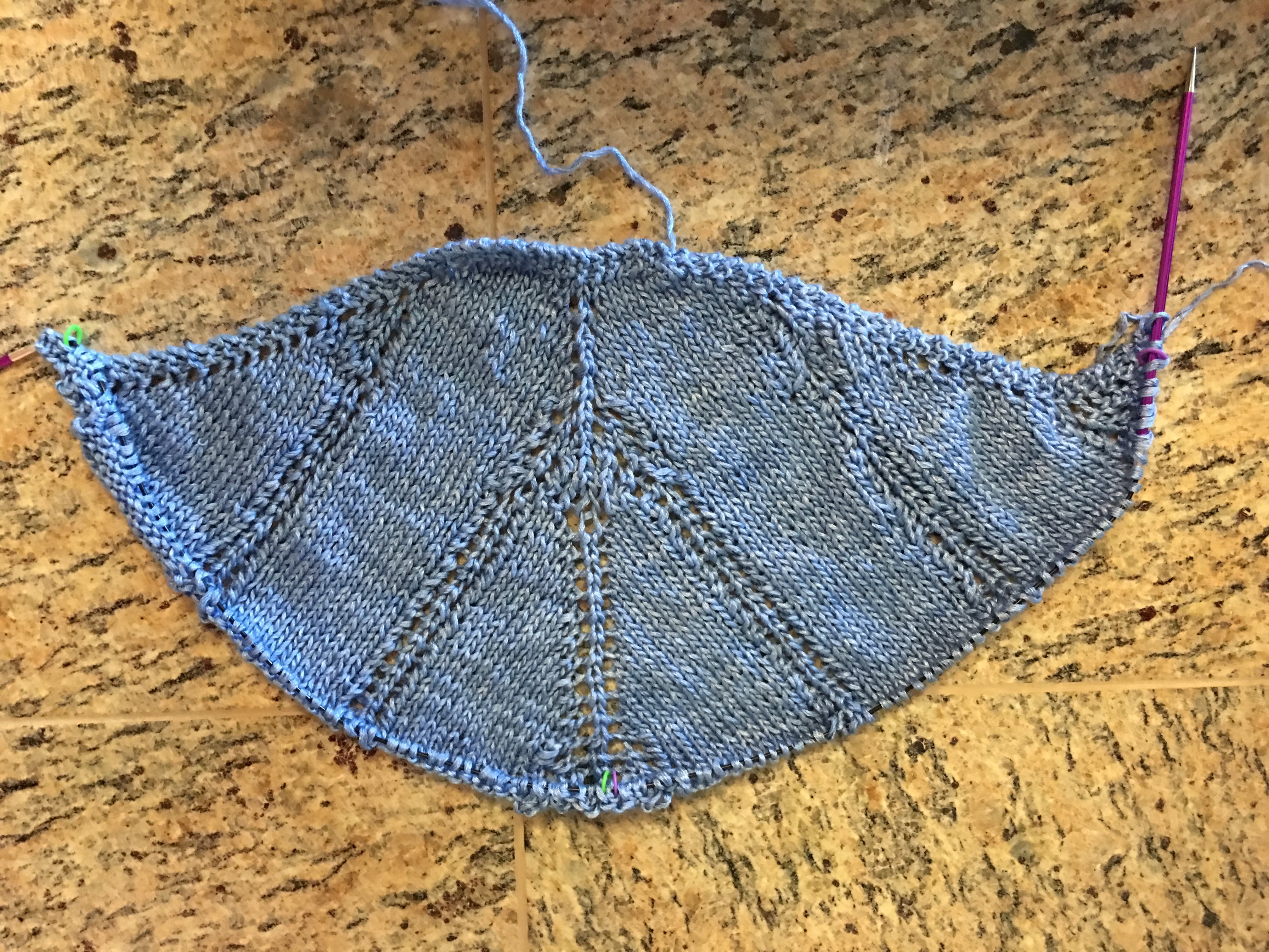 Catherine recently bought a skein of Be sweet yarn, African Bead Ball, to celebrate Knitting in Public Day. http://www.ravelry.com/yarns/library/be-sweet-african-bead-ball. She started knitting Kira K Designs’ Garden Arbor shawl (http://www.ravelry.com/patterns/library/garden-arbor-shawl) out of another Be Sweet yarn, Bamboo.