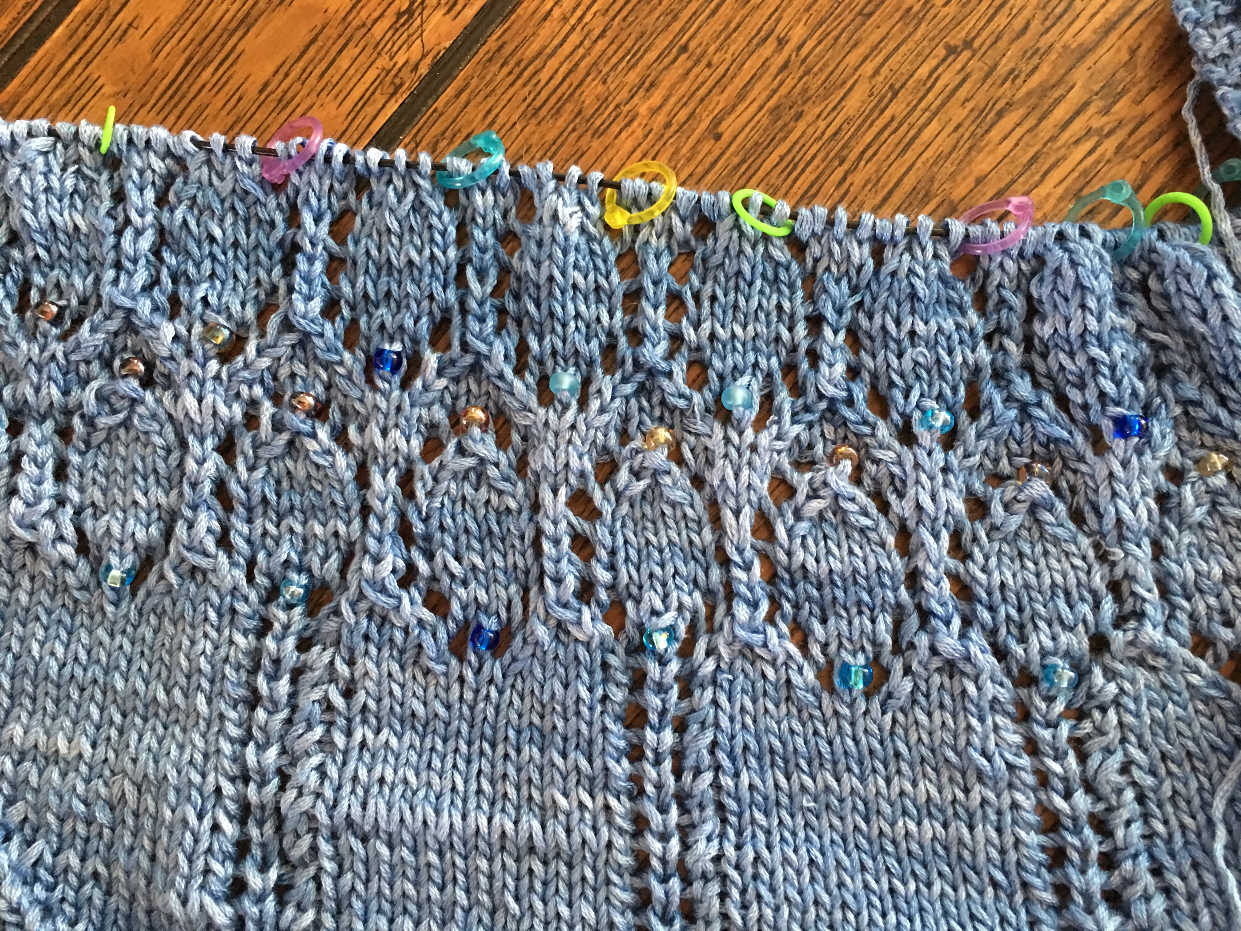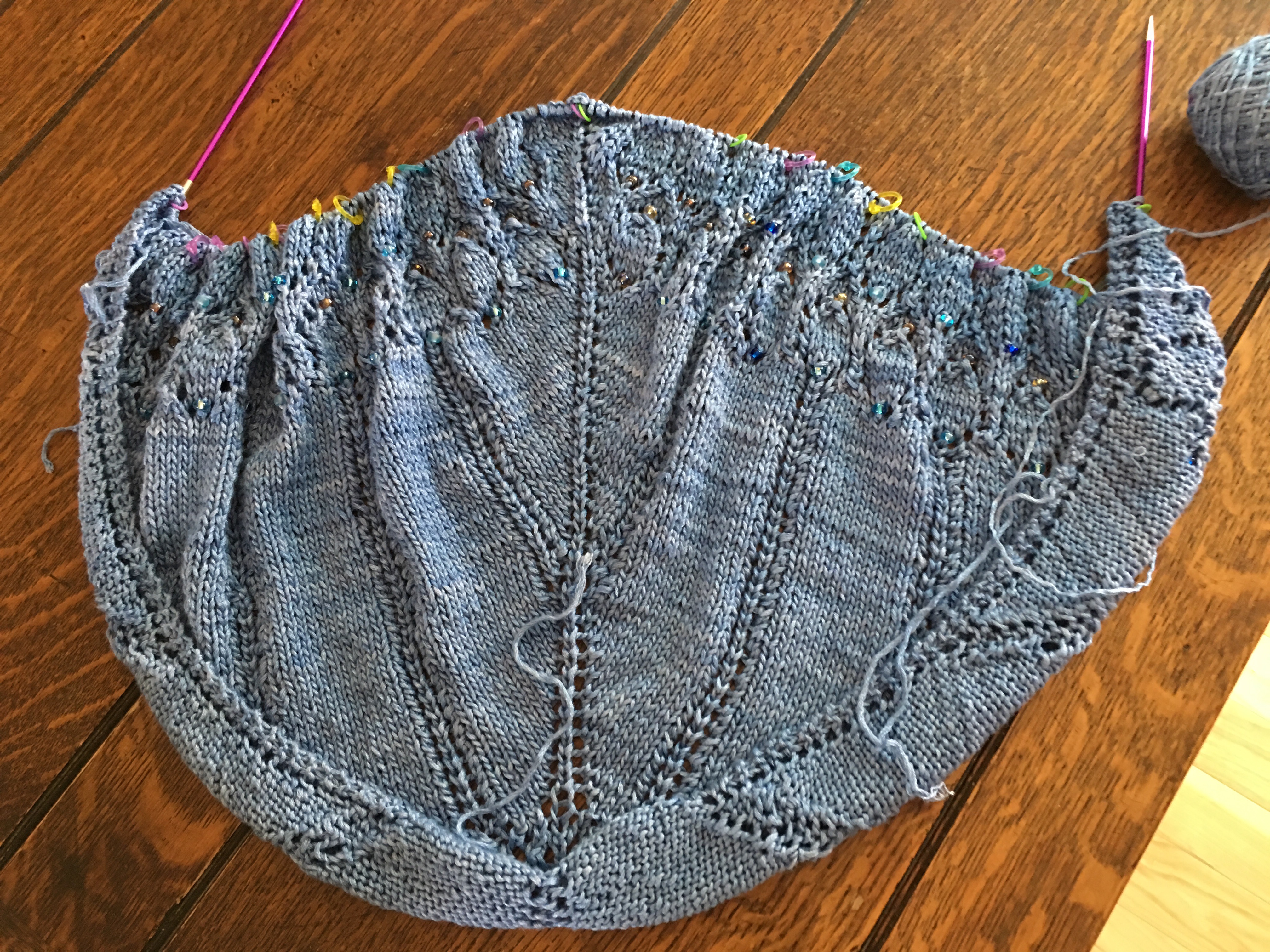 Catherine is working on the Garden Arbor shawl  http://www.ravelry.com/patterns/library/garden-arbor-shawl by Kira K Designs in the Be Sweet Bamboo http://www.ravelry.com/yarns/library/be-sweet-bamboo