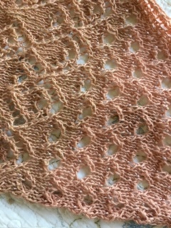 Catherine continues her long trek with Absolutely Essential Scarf by Bunny Muff http://www.ravelry.com/patterns/library/absolutely-essential; now becoming bored with a stitch that was frustrating her awhile ago. She is also starting socks for a local charity campaign organized by The North Coast Knittery using Kramer Yarn https://northcoastknittery.com/.