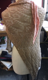 Catherine’s grand finale of Bunnymuff’s Absolutely essential shawl. She bound off with Jenny’s stretchy bindoff.