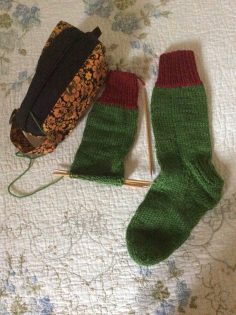 Catherine finished her third pair of Charity Socks and also finished the Fatima Shawl